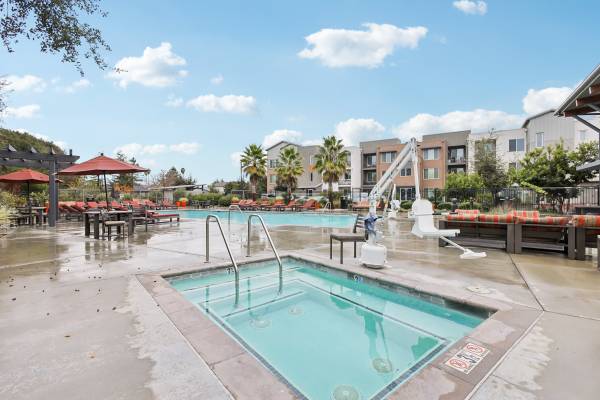 DESCRIPTION: Altura Apartments invites you to tour this one-bedroom, one-bathroom model. It features a spacious living room with an adjoined balcony. A second balcony awaits near the flex room. While all homes stay cozy with heat and air conditioning, third-floor apartments have fireplaces for added comfort and luxury. Chores are easy with a wraparound kitchen outfitted with quartz countertops and stainless steel appliances, including an Energy Star-rated refrigerator and dishwasher. A full-size washer and dryer set is also available. To offer extra convenience, the bedroom has a walk-in closet and direct access to a full-size bathroom. More closet space is available along the hallway. Altura Apartments welcomes pets and even has an on-site dog park. Outdoor amenities include the saltwater pool, spa, and barbecue grill. A bocce ball court, a yoga and spin room, and a fitness center are available. The community has garages and EV-charging stations as well. Inquire now.