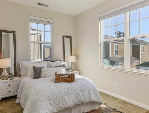 The spacious residences feature 9-foot ceilings, vibrant luxury flooring, and ample natural light, creating a bright and inviting environment. Each home includes a full-sized washer and dryer, along with an in-home washer and dryer set, providing convenience for daily chores. The attached two-car garage and private terrace add to the practicality and comfort of these townhomes. Pet-friendly policies, water-efficient landscaping, and a community playground make it ideal for families and pet owners alike.