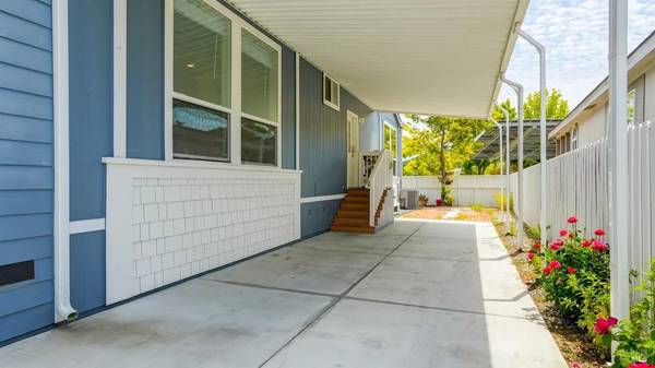The home that offers 1740 sf w/ open floor plan, large chef's kitchen w/ island, pantry, quartz counters, state of the art cooktop & oven, dining-living area, Primary suite w/ large closet, Primary bath w/ double vanity, separate shower & tub.The comfort of this home is furthered by AC, laundry room, 3 parking spaces, 2 covered by carport, with guest parking & lagoon access beyond the backyard. Additional amenities for this ALL age community.