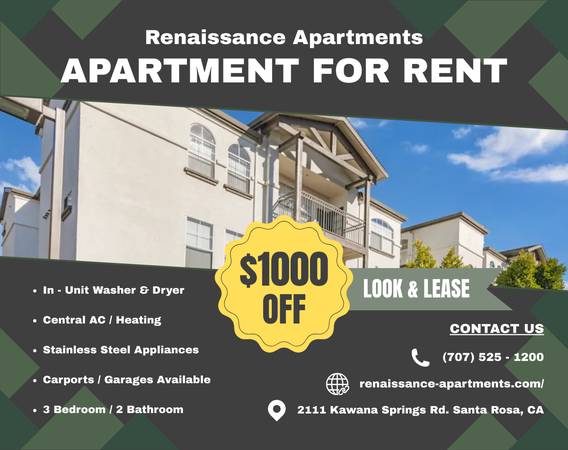 Contact us for more information about our apartments in Santa Rosa, CA—one of them could be your new home in no time!