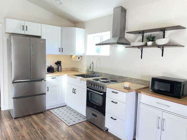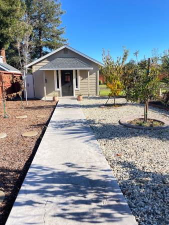 Welcome to a charming oasis nestled in the heart of wine country with redwood trees and views of the mountains. Built in 2022 with a private driveway and entrance, this 480 sq ft cottage is the perfect space to come home too! The kitchen includes a microwave, electric stove, refrigerator, portable island, butcher block counter tops and comes stocked with all your basic kitchen needs including Keurig, pots, pans, dishes, utensils, dishes, toaster, and more! The living room holds brand new furniture making it the perfect spot to relax and unwind. In the bedroom sits a new queen bed (mattress, sheets, comforter, pillows) with a spacious closet area. The bathroom is stocked with fresh bath towels and complimentary starter toiletries and also holds the washer and dryer unit.