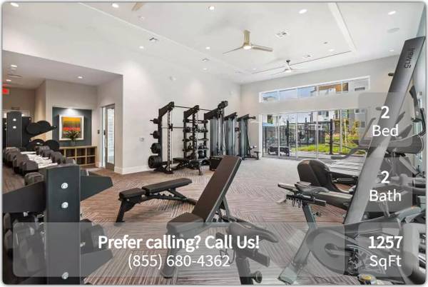 − Indoor/outdoor fitness center with free weights and cardio machines