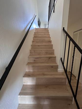This beautifully remodeled condo is located in an ideal quiet community and has a pool and the golf course as its backyard! Upon entering, you are greeted with the two bedrooms, one of which has a sliding glass door to its own private patio looking out to the golf course, plus the full bathroom. Large closets are downstairs for additional storage. As you make your way upstairs, there is a spacious living room with large glass sliding door allowing for abundant natural light and indoor outdoor living. The half bath and kitchen with pantry and dining space live just off the living room.