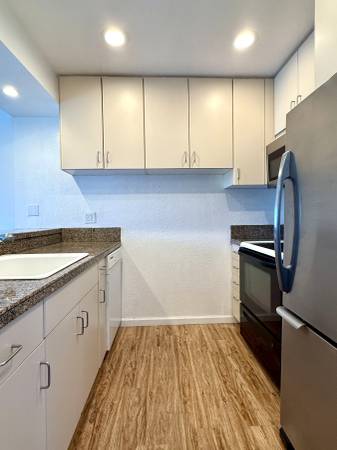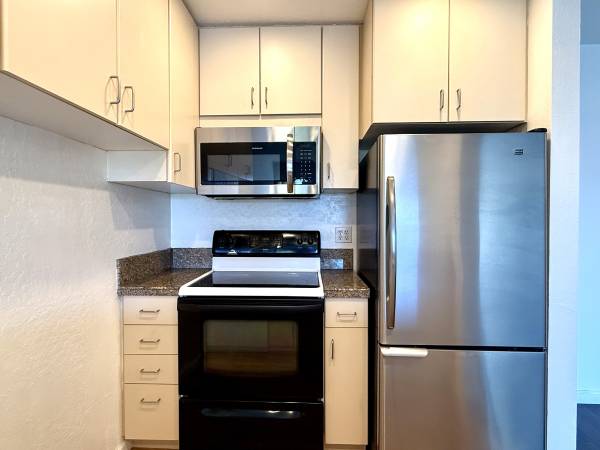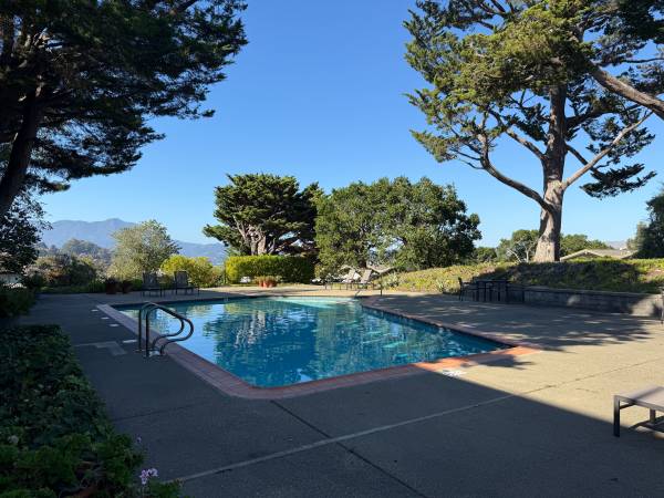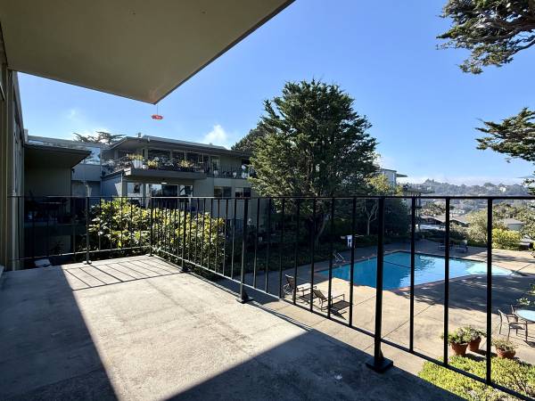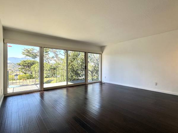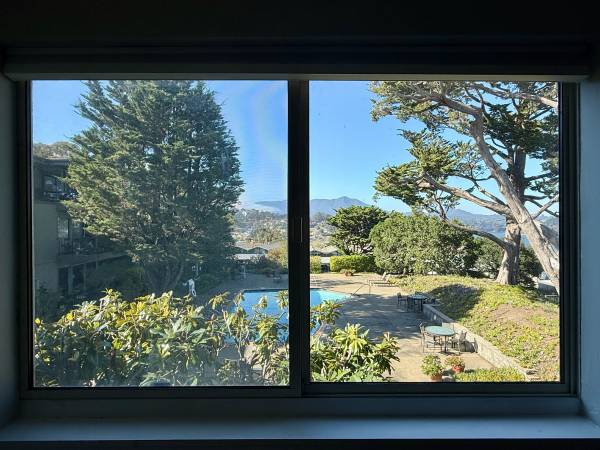 Comments: Come view this top floor end unit condo with spectacular views for rent! 348 Eden Roc Drive has dark wood floors in the living area and carpet in the bedroom. The kitchen has tiled counters and comes equipped with a stainless steel refrigerator, a microwave, and will be delivered with a brand new oven/range and dishwasher (which are still on the way and not reflected in the pictures). The living room has excellent natural light, with wall-to-ceiling windows that open onto a spacious deck. There are west facing views from the living room and deck that offer breathtaking views of Mt Tam. The living room windows come equipped with electric remote controlled blinds. The spacious bedroom has a window that also has an excellent view, and the bedroom closet has built in shelving.