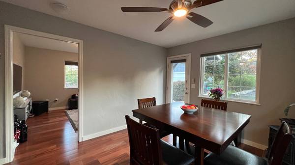 Tucked away at the end of a peaceful private lane, this beautifully remodeled 1-bedroom cottage offers comfort, charm, and convenience. The home features a spacious layout with a separate living room, dining room, and kitchen, all enhanced by fresh paint, gleaming new hardwood floors, and an updated bathroom. Surrounded by lovingly maintained gardens, the property provides multiple outdoor seating areas, as well as spaces ideal for growing your own vegetables. Enjoy the ease of a full size washer and dryer, an outdoor grill for entertaining, and plenty of parking for you and your guests. This move-in ready retreat is just minutes from downtown Sebastopol's shops, restaurants, and wineries, with quick access to Highway 101. Best of all, all utilities and high-speed internet are included, making this an effortless place to call home.