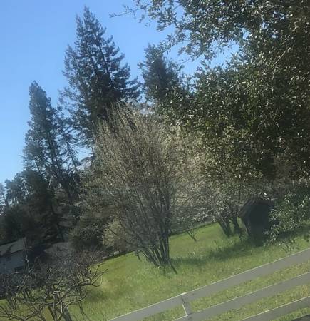 Just west of Sebastopol city limits, the cottage is behind another house and cannot be seen from the street. It faces Atascadero Creek so it's quiet and you will wake to the sounds of birds chirping. There are wild turkeys, peacocks, and deer that visit the apple orchard (unsprayed) next door. At night you can see the twinkling lights of Sebastopol on the ridge. In the daytime you can see Mt. St. Helena in the distance.