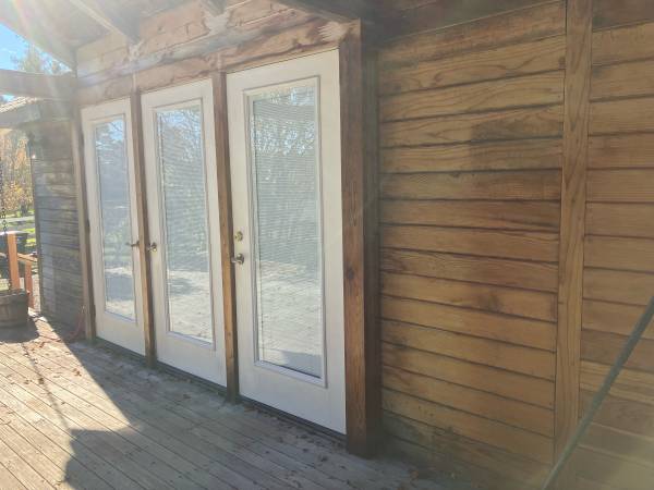 Built around 1920, the cottage has been completely renovated with refinished wood floors and original (sand-blasted) vaulted wood ceilings. New insulation (R-30 in the roof) keeps the place cool in the summer and snug and warm in the winter. One large open living/dining/kitchen space. Lots of light via three double -pane French doors with built-in Venetian blinds (between the inner and outer glass).