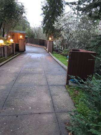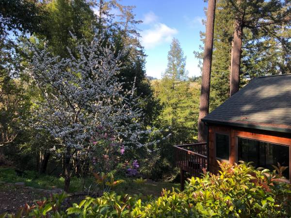 From the bottom of the hill to the top of the ridge is the longest single mile you will ever drive, and it’s beautiful. Slowly winding up the hill through a Douglas Fir and Redwood forest onto a single lane dirt road at the very ridge edge keeping even the most adventurous of solicitors away as you leave civilization into your estate retreat. Only 8 minutes from Sir Francis Drake highway, entering a large stamped concrete parking patio, feels like a world away.