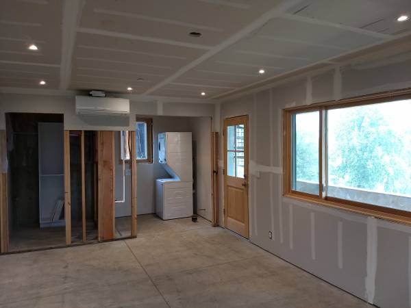 Lower level closet being completed now - will have 10' of clothes pole plus shelving.