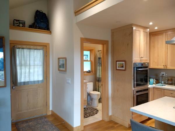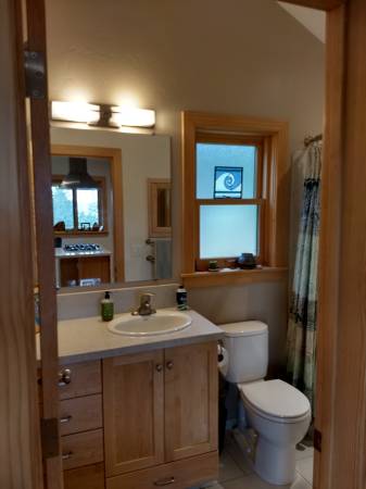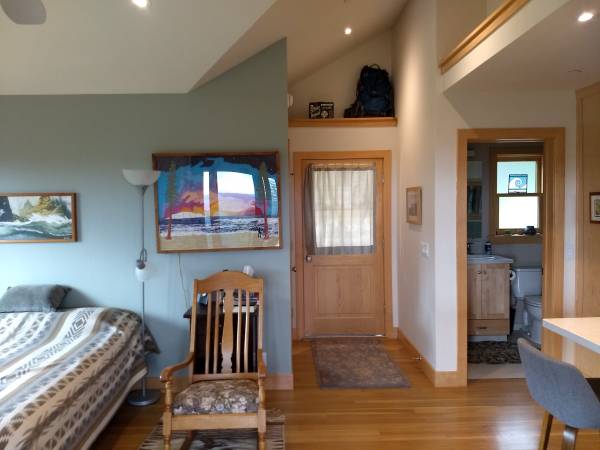 One parking space in carport below the cottage (EV charging available, renter pays charging).