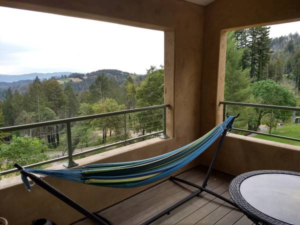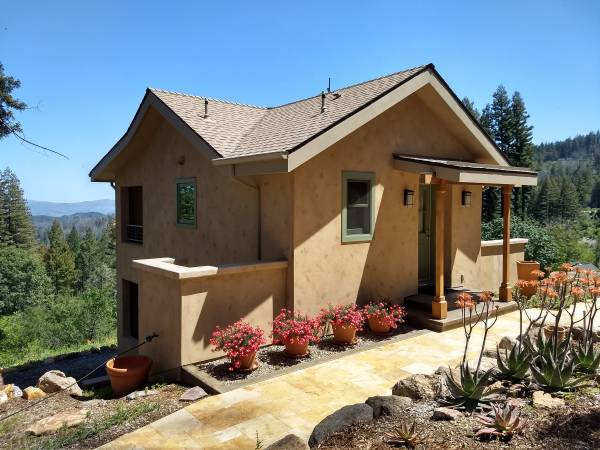Cottage is a quiet 360 sq ft main floor, plus 300 sq ft lower level and laundry area. Lower level main room and closet is in the process of completion. There is an additional 200 sq ft upper level covered deck with views to Napa Valley. And 200 sq ft lower level covered patio. Cottage is unfurnished, except for bar stools, drapes deck furniture. Located on 25 acres 10 miles from HWY29/Redwood Road intersection.