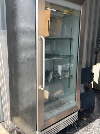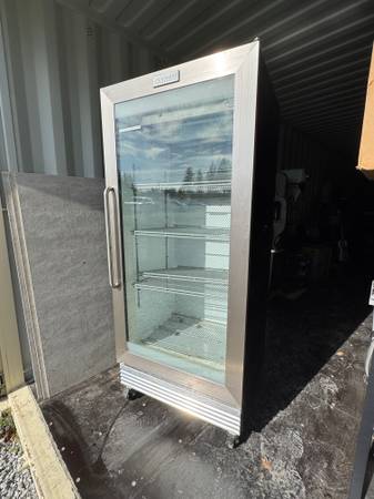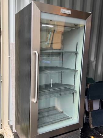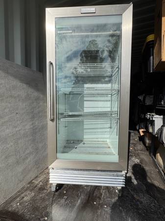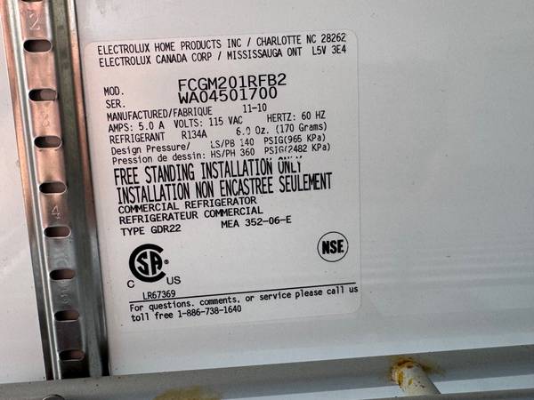 Frigidaire commercial refrigerator, model number FCGM201RFB2 up for sale here which is a freestanding, 19.53 cubic foot unit with a glass display door. It features a heavy-duty cooling system, heavy-duty locking casters, and NSF-certified components, but does not have an icemaker or water dispenser. Pretty nice cosmetic condition.