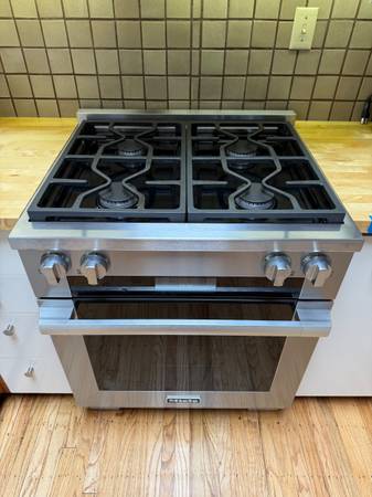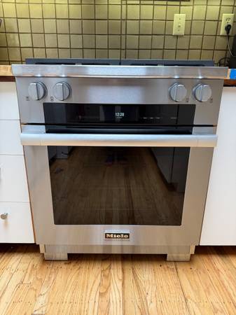 Miele 30” Dual Fuel Range (model # HR1924-2DF), stainless steel. Purchased new in Fall 2021. Excellent condition. Only selling because switching to all electric. Asking $3,800, pick up required.