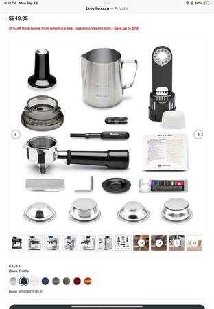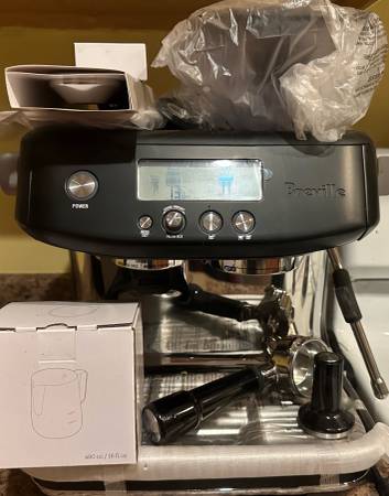 I bought this Breville awhile back… unpacked it…and it has just been sitting on my counter. It still has the plastic covering on the parts and the small items are still in their original boxes. I haven’t even plugged it in. Haha. The original box the machine came in became a cat toy and eventually recycled. The thing is, I hardly drink coffee so I’m not sure why I bought it. They go for around 849$ new, on sale right now they’re at 649$, and the remanufactured ones from Breville’s site are going for 549$. I’m firm on the price of 300$. If interested, text me at number listed.