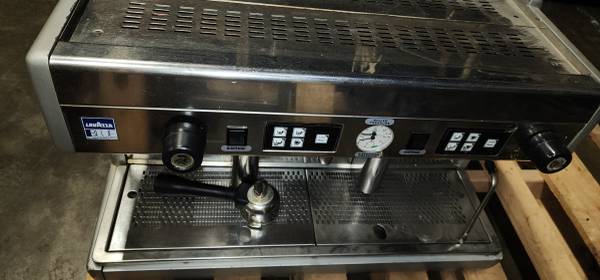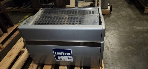 Used LaVazza Blue commercial 2 head espresso machine. We couldn't locate an ID plate on it, but it appears to be a LB4712 or Wega EVD-2N-NA. Machine works and heats, no leaks. Left side steam valve doesn't work but the right works. The water/tea solenoid doesn't work. Left side steam wand missing. Has internal booster pump, tests good. Includes 1 portafilter, legs, and a printed manual. Sold as-is for repair or parts, recommend descaling boiler and thorough service/cleaning. Requires 240V power, a drain connection and a 3/8" push fitting for water inlet. Unit is very heavy, requires at least two people to load and unload. Cabinet is in good condition, no missing panels or dents.
