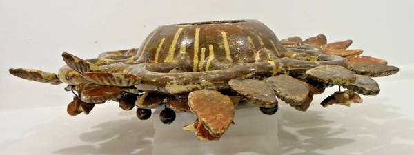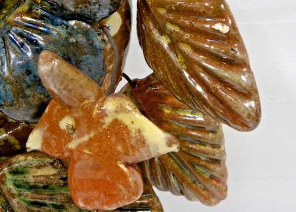 Mexican Art Pottery 21" Sun God Tree of Life Wreath Wall Sculpture Very Good Condition - a few minor chips and one loose leaf Diameter 21" - Depth 5 1/2" - Weight 13 lbs.