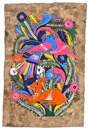 Mexican Folk Art Amate Bark Painting - (15 X 23 inches) Fragile - Original Owner c1970