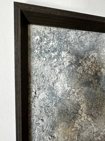 Mid century modern abstract painting by European artist, signed. Very dimentional textured textured surface in the original wooden frame. 23"/19"