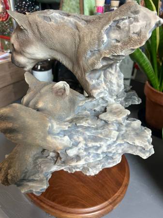 Mill Creek Studios Mountain Lion sculpture called “the Lair” signed and numbered. Randall Reading. Large and heavy. 14” tall Looks great