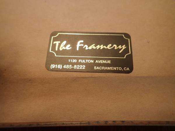 The print is 31x19 and the frame is 38x26, it is double matted and the wood frame has a greenish hue to it.