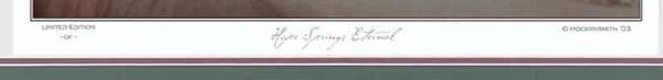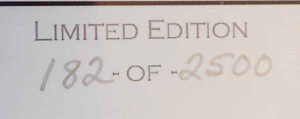 This is from Hockensmith Fine Art Editions. It is still in production and you can buy it brand new and have it shipped here for $400. OR you could get the same thing for $100. It is double matted with a stylish V groove in the outer mat. Frame is 24x30 and the print is 20x14. It is numbered and signed. It is absolutely beautiful, but not my style.I was going to just use the frame and matting till I found out what this actually is. It would be a tragedy to destroy this unnecessarily.