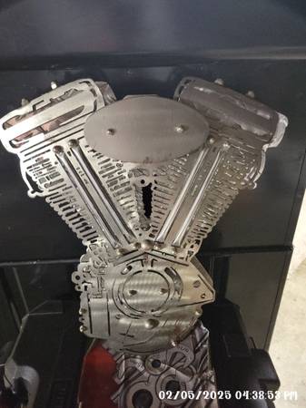 It is designed to resemble a V-twin motorcycle engine & serves as a decorative light fixture/two light wall sconce.