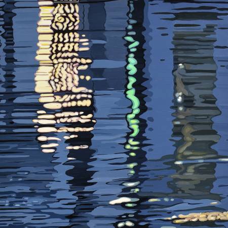 Painting from 'Sausalito Reflections' Series. Style: Abstracted Waterscape / Neo Impressionism / Hyperrealism. Original Contemporary Art by Alex Nizovsky / Sausalito, California.