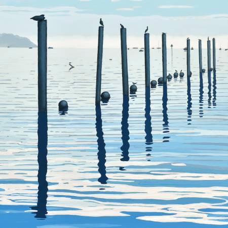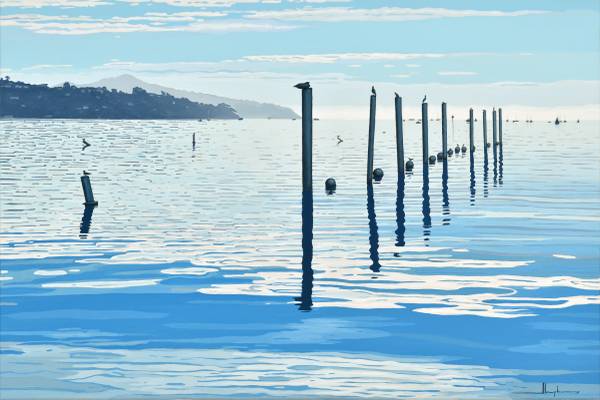 Painting from 'Sausalito Reflections' Series. Style: Hyperrealism / Abstracted Landscape. Inspired by works of David Hockney. Original Contemporary Art by Alex Nizovsky / Sausalito, California.