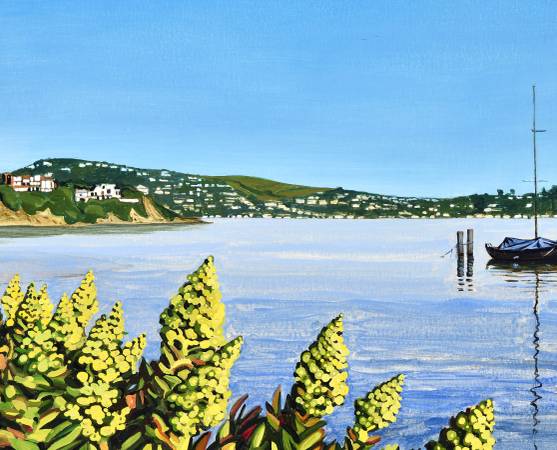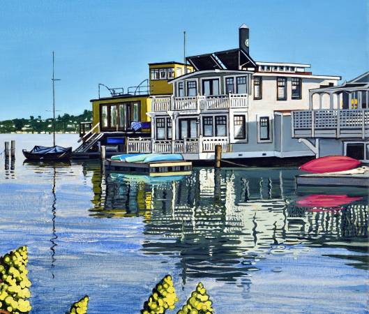 Painting from 'Sausalito Reflections' Series. Style: Photorealism / Pop Art / Abstracted Landscape. Inspired by works of David Hockney and Jonas Wood. Original Contemporary Art by Alex Nizovsky / Sausalito, California.