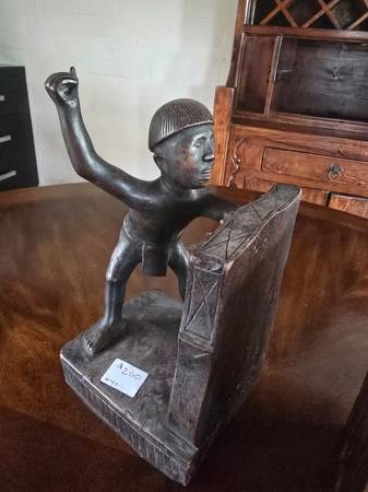 Antique Vintage book ends about 12 inches h,x6 in w,good condition I think they are made of ebony wood, Beautiful peices, heavy, were bought at an antique shop for $200,selling for $50.