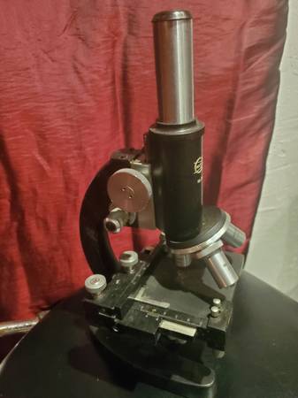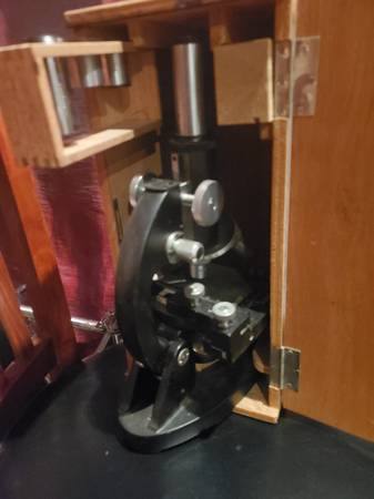 Antique Mayflower microscope in a cool box with extra eye pieces.