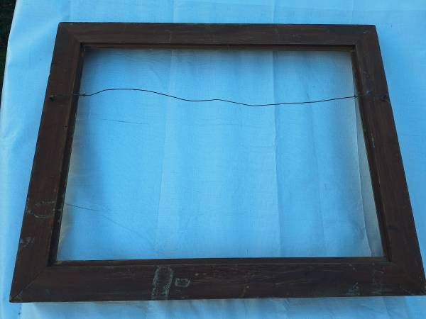 An older golden colored picture frame, in good shape. Could be used for a mirror or painting. Size will hold a 22"1/8 x 29"1/8.
