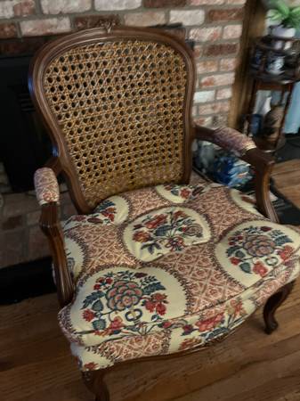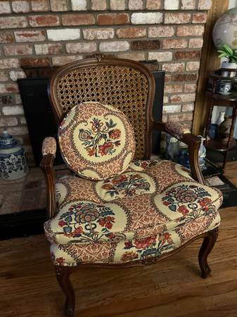 Cane back cushioned chair with matching pillow Cushioned arm rest