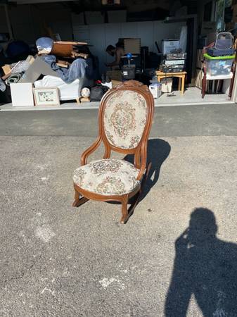 Selling this beautiful antique rocking chair. Low and small, very comfortable and in great condition. Asking $20 or best offer.