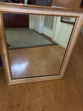 Pics 7-8. Second mirror can be hung vertically or horizontally (rings and wire in back). Has textured frame and mirror is beveled. Measures 35 inches by 29 inches. $75