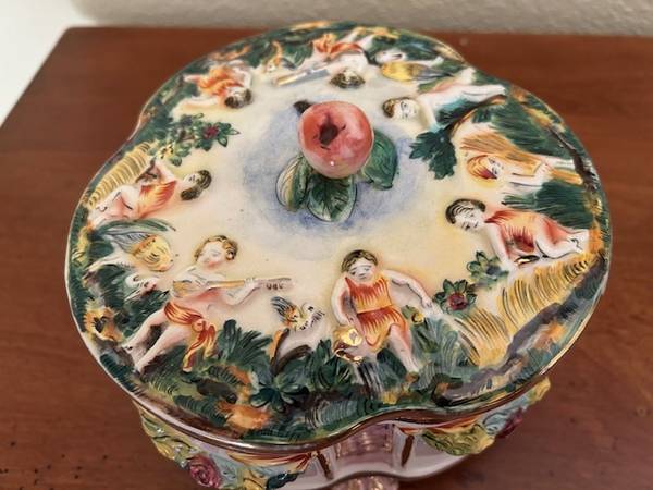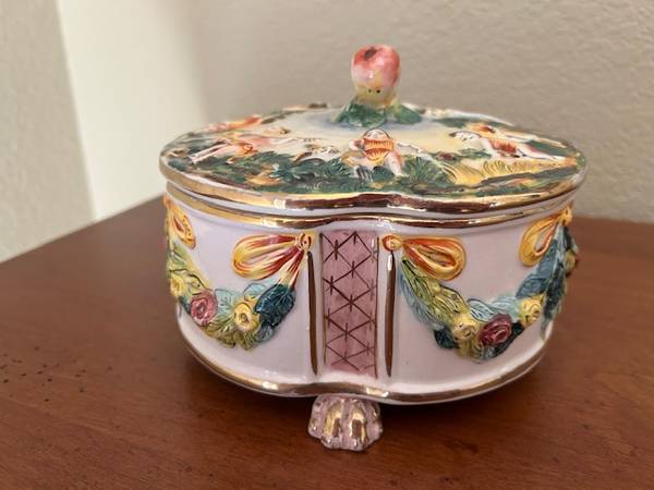Beautiful floral antique candy dish w/lid. Circa 1950s, belonged to now deceased grandmother.