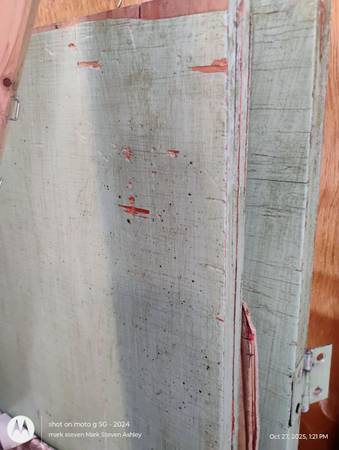 Really great patina in person it's a nice depression era light green not 50 seafoam boards are 4 ft Plus doors or plywood I do have the knobs painted wood also looks like you get to get this treasure please leave a number and response to you receive one thank you