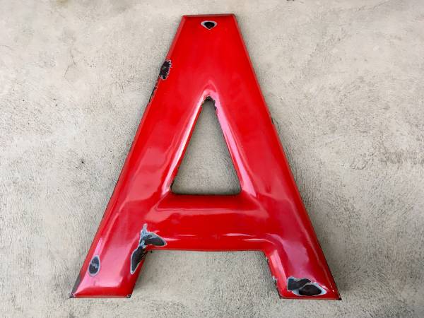 Large Enamel Letter "A" Wear Consistent With Age Very Good Condition 24" Tall OBO