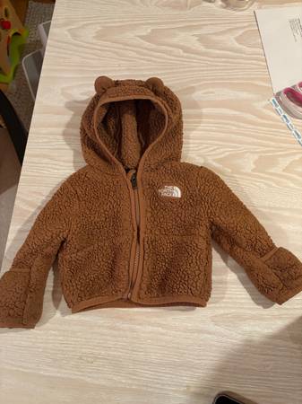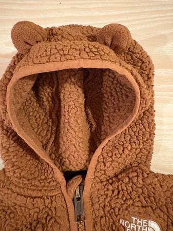 Selling a Baby Campshire Full Zip Hoodie in Brown by The North Face. Very cute teddy bear ears on the hood. Currently sold out but retails for $70. Only worn once- in excellent condition. Size 0-3...
