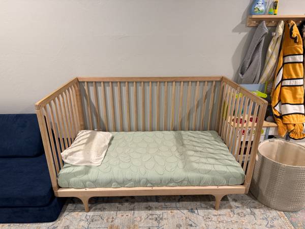 Crib: solid wood crib by Kalon Studios. Bought new 6 years ago (we've used for two children)