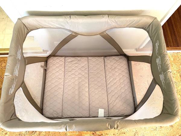 Comes with a diaper changer and 2 mattress sheets. Both the play yard and the changer are color: Safari.