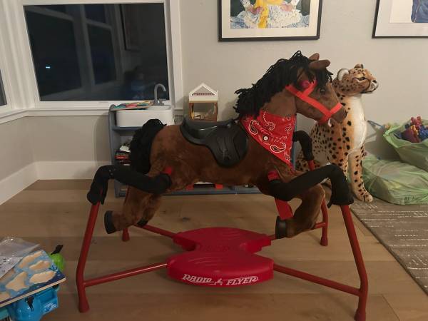 This is the product. https://www.radioflyer.com/collections/spring-horses/products/chestnut-plush-interactive-riding-horse