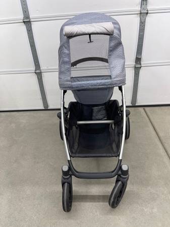 Uppababy Vista Stroller medium blue color. Very well cared for and very clean. This stroller has been great and Uppababy products are very well made. Comes with 2 rain shields and screens. Infant insert and pillow are also available for purchase ($40).