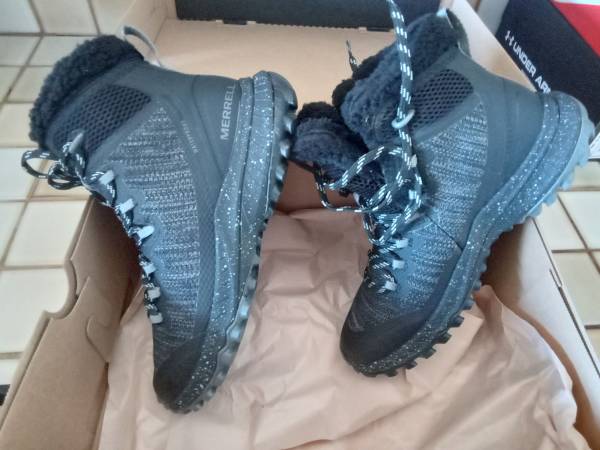Merrill Thermo Polar warmth and waterproof winter fashion boots. Size is also in pics. Email and I'll call you back when available.