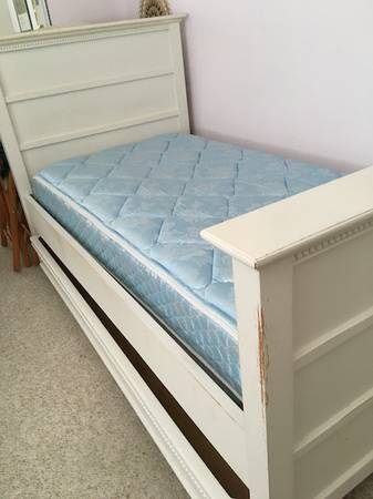 Pottery Barn Kids Catalina Twin Bed Frame and Trundle, Sealy Backsaver Avenbury twin mattress