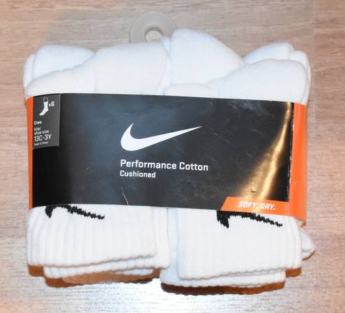 Nike Performance Cotton Cushioned Socks 6 pair Crew socks size 13C - 3Y
