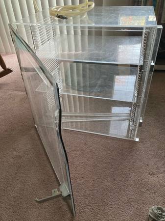 Desiccator needs Repair. With airline with quick connect fitting. Missing one of the latches and a semicircle section of plexiglass it was attached to. $50 Cash Only