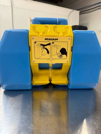 Speakman SE-4400 9 Gallon Portable GravityFlo Eyewash Station with Mount In clean, excellent condition. Comes with board for wall mounting with a bracket that holds it.