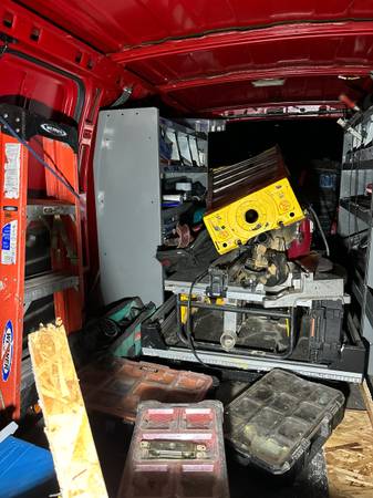 Passenger side rear cargo door has a dent. Needs new tires. interior driver side door has some cutting away at the plastic door liner due to a new handle lock mechanism installed. Chip in windshield. Drivers seat has tears. No CD player… no Bluetooth… stock AM/FM radio. Antenna is missing. Power steering motor is whining. Registration is two years out.
