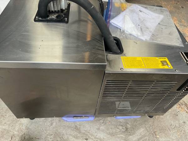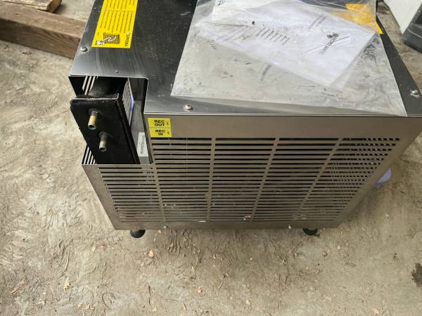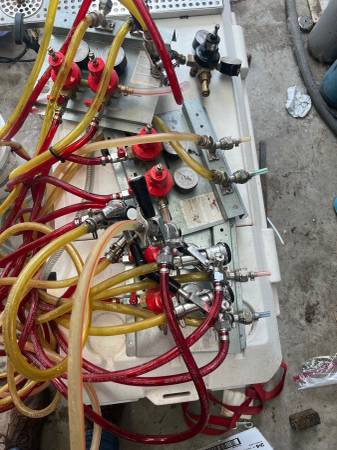 Micromatic Beer lines for remote operation. Micromatic chiller keeps lines cold allowing sending beer from a remote cooler to point of use. Eight beer transfer lines bundled in a insulated jacket with regulators on the Keg ends and chilled 6 Micromatic taps of the service end. Chiller is near new. See photos for details.